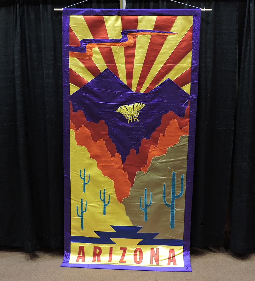 Our Lead Designers—Rea H., Amy E., Mickie R., and Kathie H.—created designs for the display table and shared their interpretation of thrust lines and their design choices. Their explanations helped clarify how the principles apply in practice, and their finished designs offered wonderful examples for members to study.